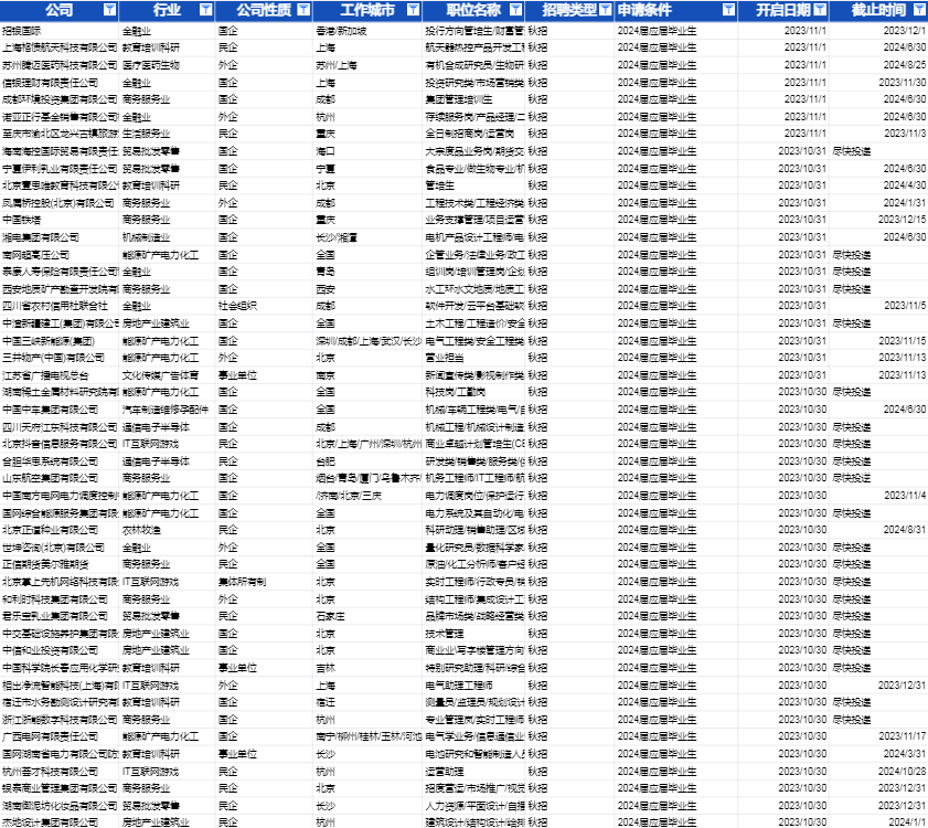 覆盖国企|央企|民企|外企|台企等公司校招信息表,评论区留言领取。