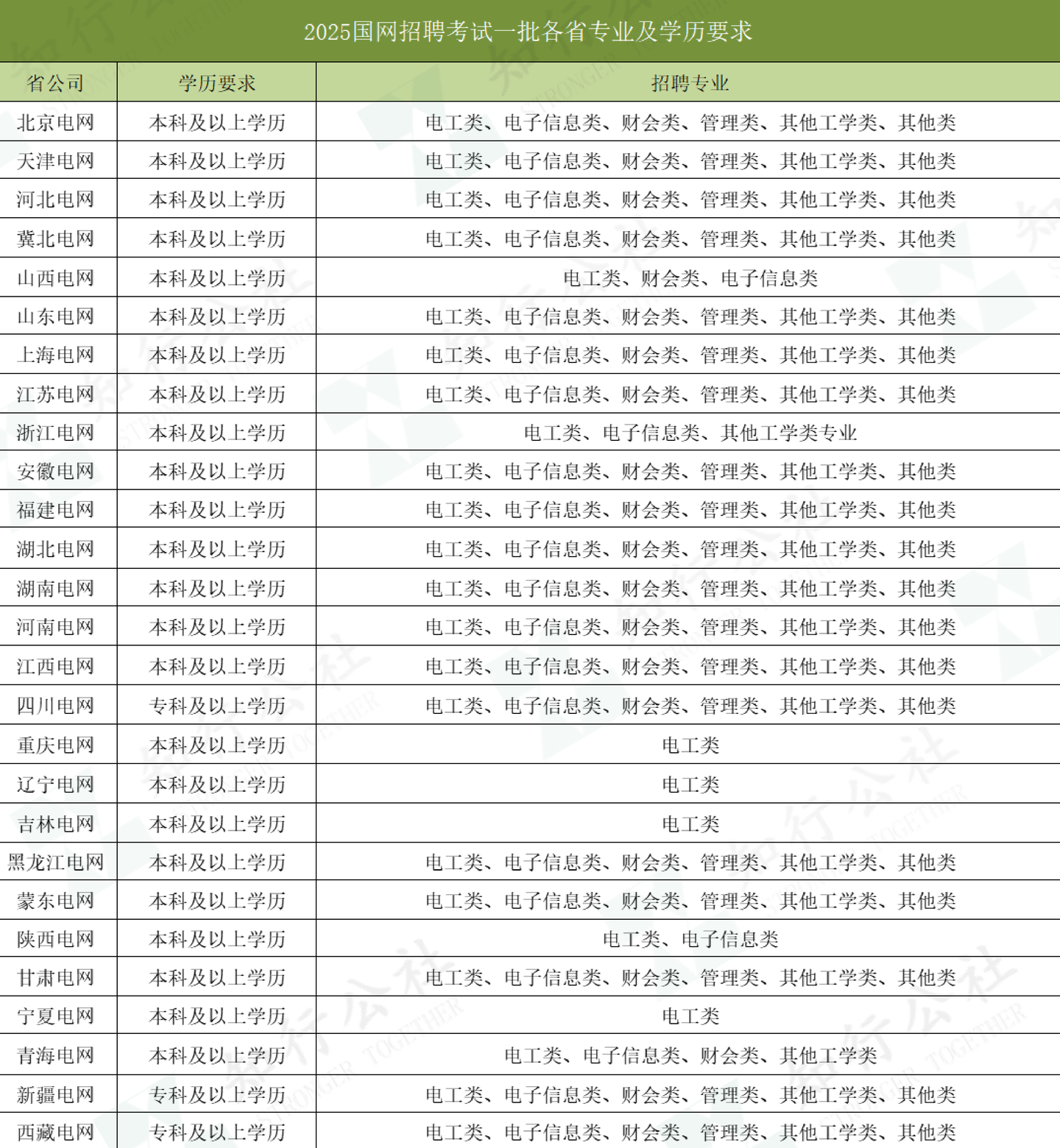 25届新增三批次,有24个省市有招聘计划,国网三批招聘的专业条件中,只有福建亿力集团有限公司所属单位与四川蜀能电力产业发展有限公司的部分子公司要求全日制专科以上学历,其余公司的要求是全日制本科以上或研究生以上